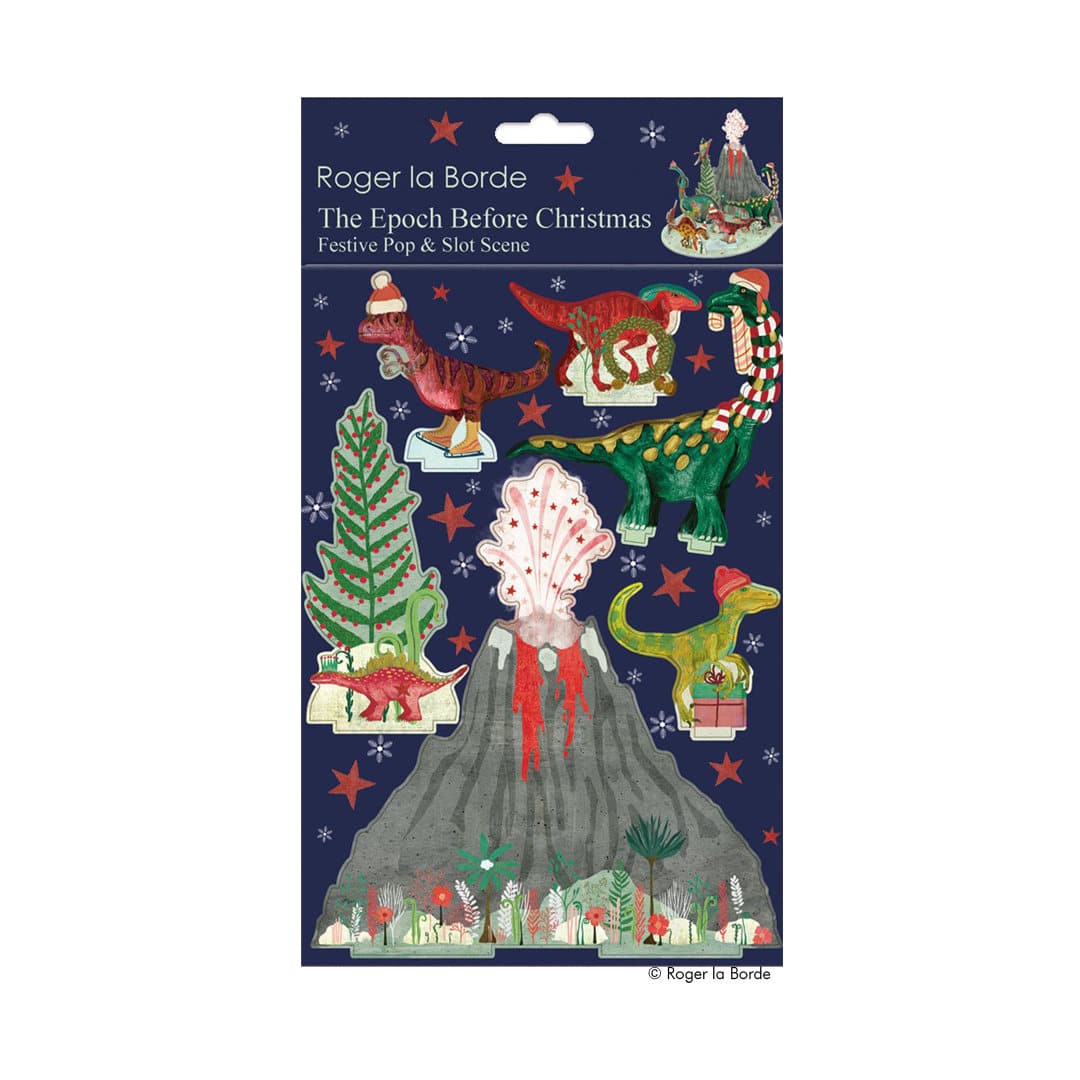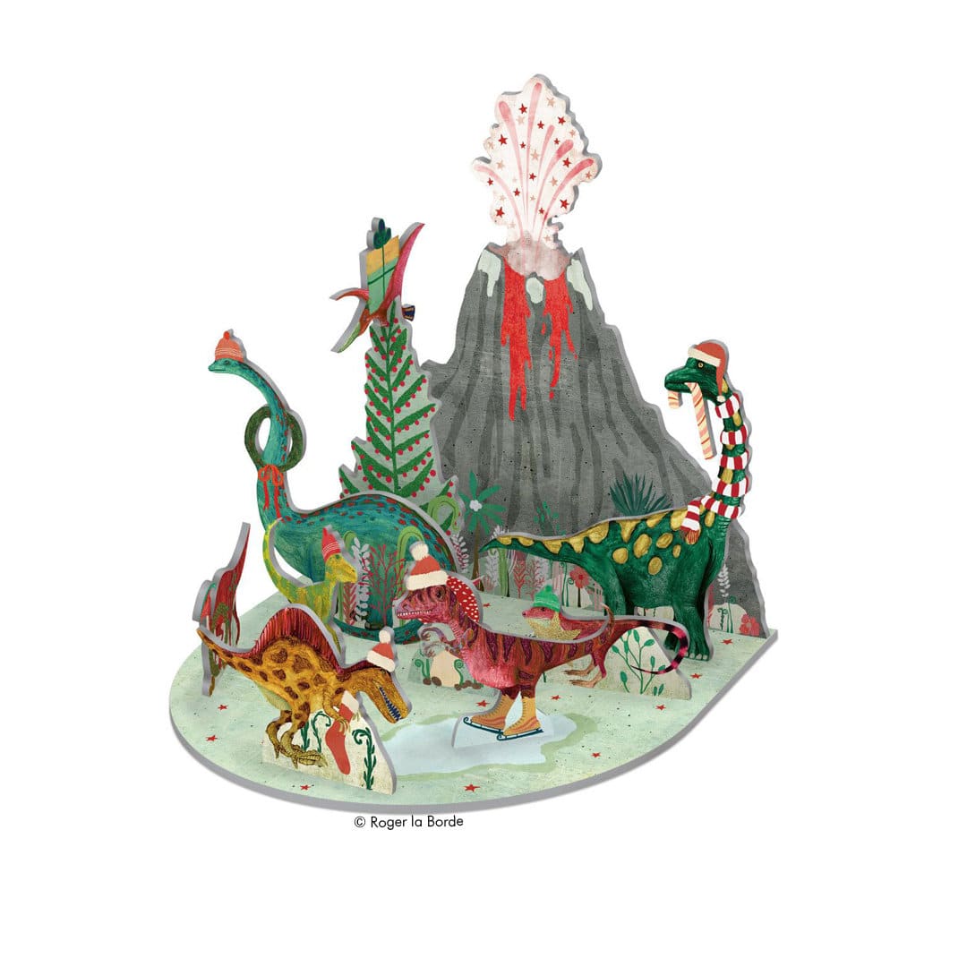 3D Pop & Slot Set „Urzeit-Dinosaurier mit Vulkan“ mit einer dekorativen Szene zum Aufstellen.