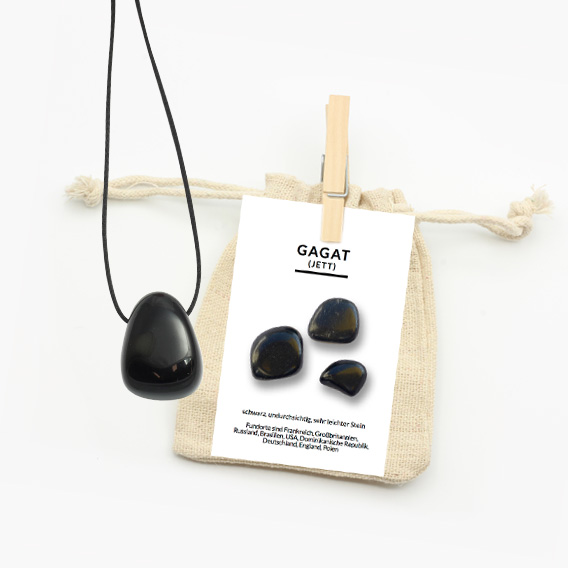 Zur optimalen Aufbewahrung wird der wunderschöne Gagat Trommelstein Anhänger in einem Natur-Jutebeutel geschützt. Eine ausführliche Beschreibungskarte wird mitgeliefert. Auf dieser sind allgemeine Informationen sowie die Heilwirkungen auf Körper, Geist und Seele gut zum Immer-wieder-Nachlesen zusammengefasst.