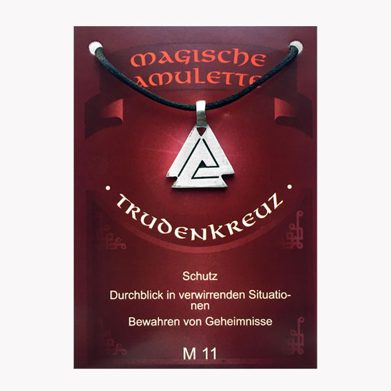 Das Trudenkreuz stammt aus der Zeit der Wikingern. Es besteht aus drei verflochtenen Dreiecken. Geheimnisvoll, da verschiedene Deutungen, z.B.: Flammen, dreiblättriger Klee, später Dreifaltigkeit Gottes.