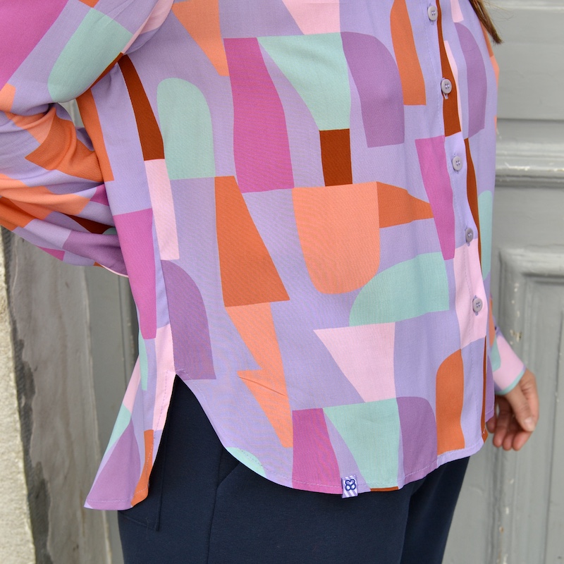 Wir haben die Länge bei dieser Bluse etwas gekürzt, weil es durch die Stoffart einen lässigen, geraden Look ergibt.