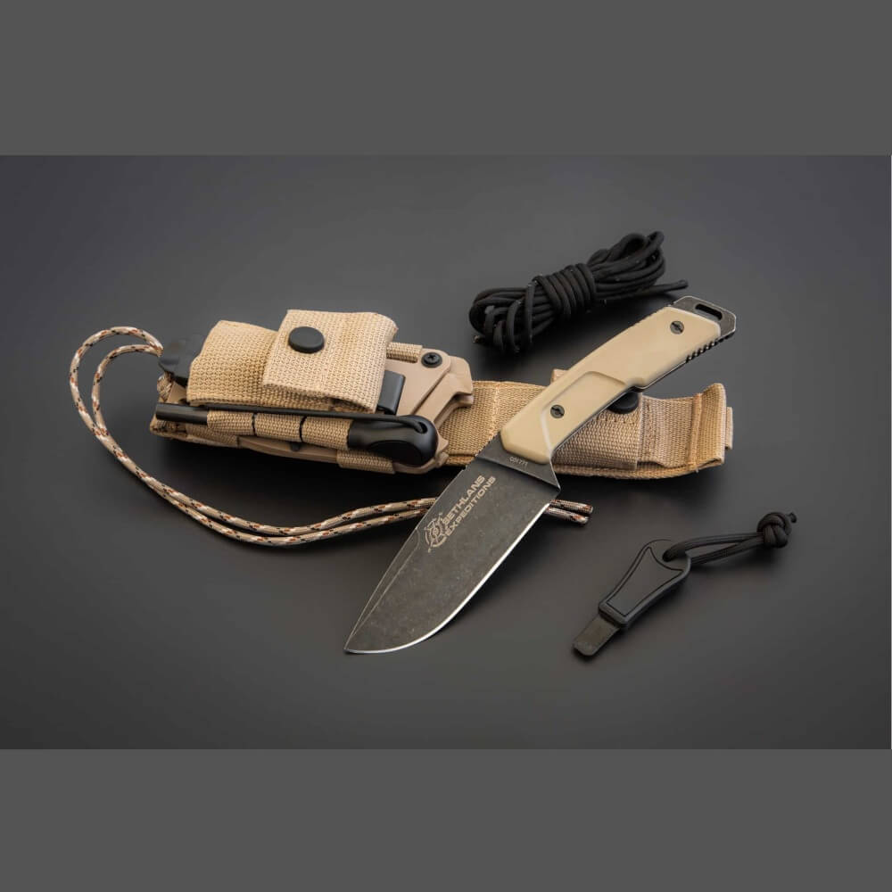 Das Sethl­ans Expe­di­ti­ons ist ein Mes­ser mit fest­ste­hen­der Klin­ge, das für eine Viel­zahl von Situa­tio­nen geeig­net ist, aber auch als Back-up-Mes­ser ein­ge­setzt wer­den kann. Sethl­ans Expe­di­ti­ons wur­de in Zusam­men­ar­beit mit Danie­le Dal Can­to, Mas­ter Advan­ced Ins­truc­tor, ent­wi­ckelt. Es hat einen BÖHLER N690 (58HRC) Klin­gen­stahl mit MIL-C-13924 Brü­nie­rung und einem ober­fläch­li­chen Stone Washed Finis­hing (DARK STONE Finishing).