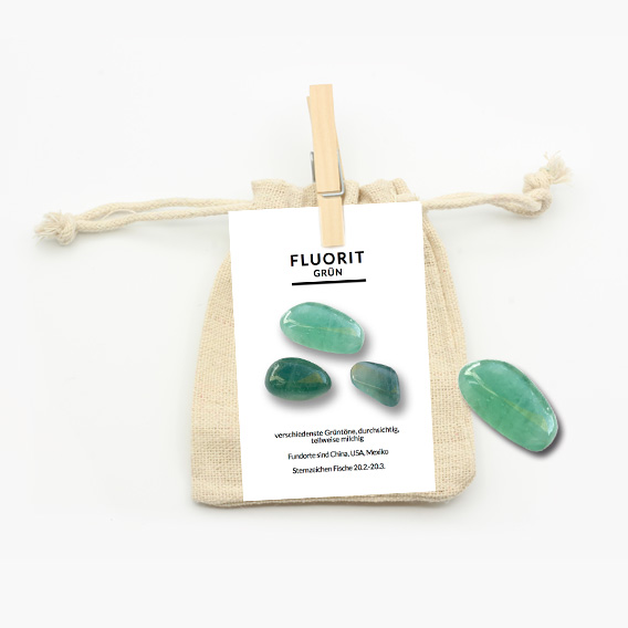 Zur optimalen Aufbewahrung wird der Fluorit grün -Trommelstein in einem Natur-Jutebeutel geschützt. Eine ausführliche Beschreibungskarte wird mitgeliefert. Auf dieser sind allgemeine Informationen sowie die Heilwirkungen auf Körper, Geist und Seele gut zum Immer-wieder-Nachlesen zusammengefasst.
