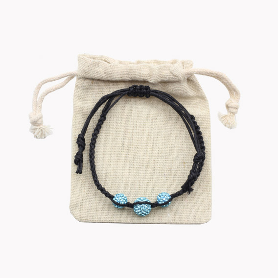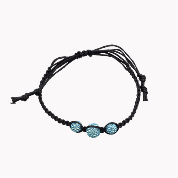 Das wunderschöne Armband besteht aus einem geflochtenen Band mit flexibel einstellbarer Weite und türkisen Shamballa Glitzerperlen.