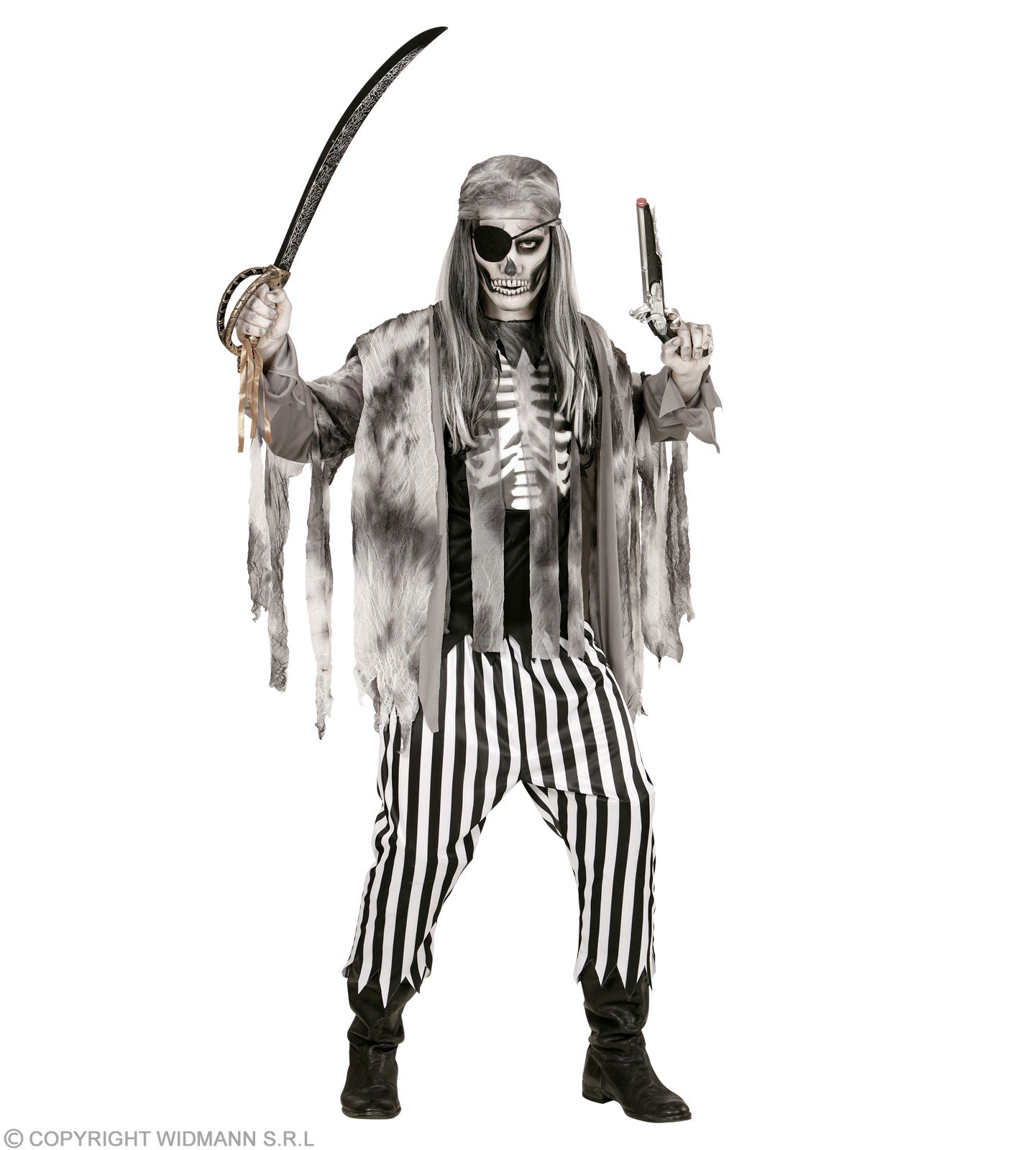 Shirt mit Rippenaufdruck, Jacke, Hose, Bandana, Augenklappe