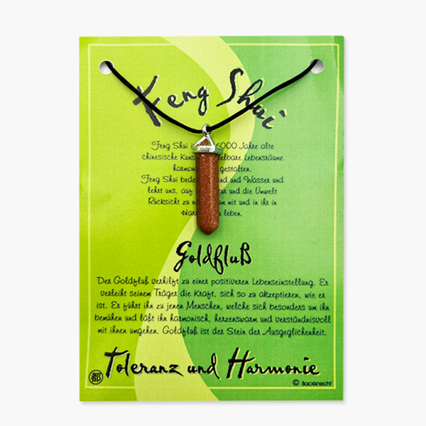 Die Abbildung zeigt einen Feng Shui Anhänger aus Goldfluss rot auf großer Karte. Bitte beachten Sie, dass sich der Anhänger Ihres Kaufs minimal unterscheidet und in Form, Farbe, Dimension und Ausführung geringfügig anders aussehen wird!