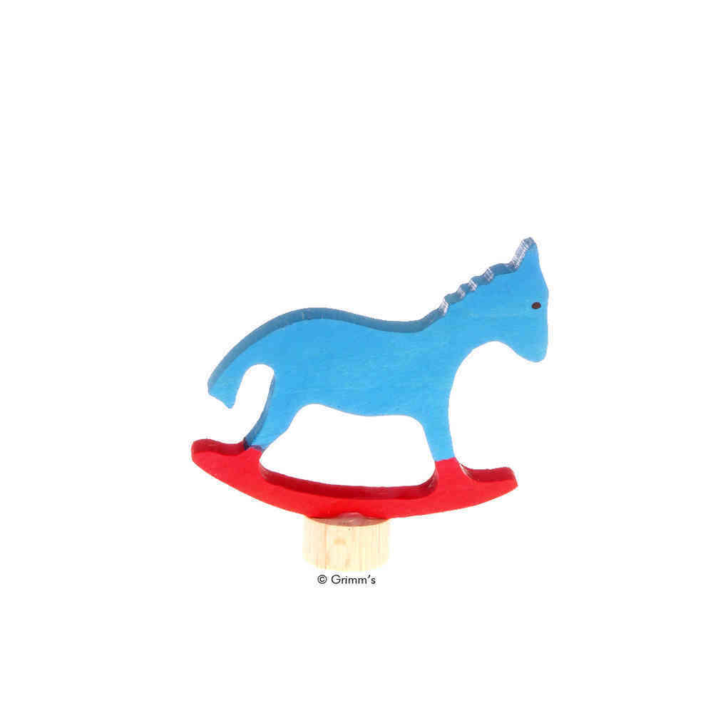 Grimm’s Stecker Schaukelpferd in blau mit roten Kufen, für den Geburtstagskranz, Jahreszeitenring oder ein Lebenslicht.