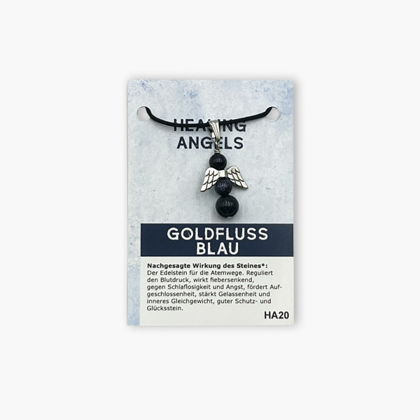 Healing Angels Goldfluss blau Glücksengel Anhänger auf kleiner Karte