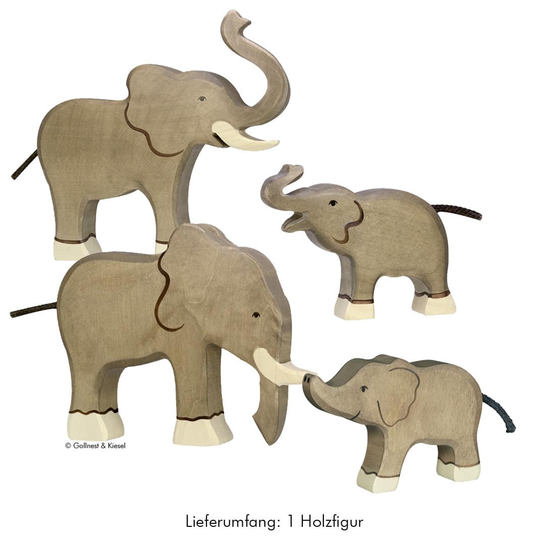 Holzfigur Elefant mit erhobenem Rüssel