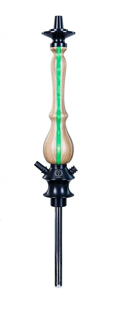 Die Karma Hookah wird dich mit ihrem edlen Design und der hochwertigen Verarbeitung beeindrucken. Die traditionell aufgebaute Pfeife ist ein Hybridmodell, das moderne Elemente integriert. Die Rauchsäule, gefertigt aus 100% natürlichem Holz, sticht sofort ins Auge. Du kannst sie in einer natürlichen, dunklen Holzoptik oder elegant in Grau/Schwarz lackiert bestellen.