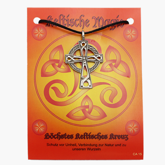 Höchstes keltisches Kreuz – ein universelles Symbol aus uralten Zeiten: Das Kreuz zeigt eine Mischung aus christlichen (das Kreuz) und heidnischen Symbolen (die endlosen Knoten als Sinnbild für das ewige Leben). Das Rad symbolisiert die Veränderlichkeit des Lebens.