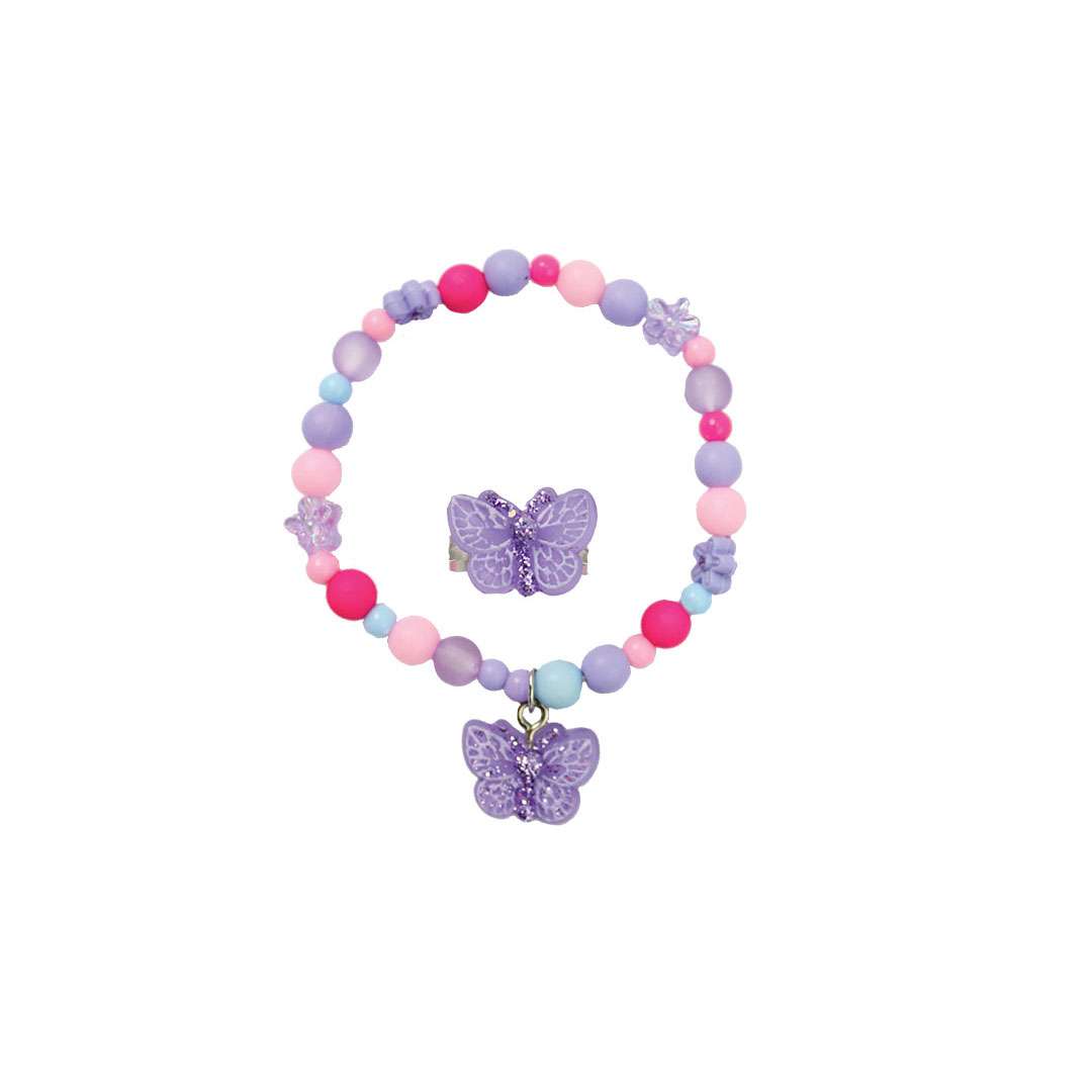 Kinderschmuck Glitzer-Schmetterlinge-Set Armband und Ring