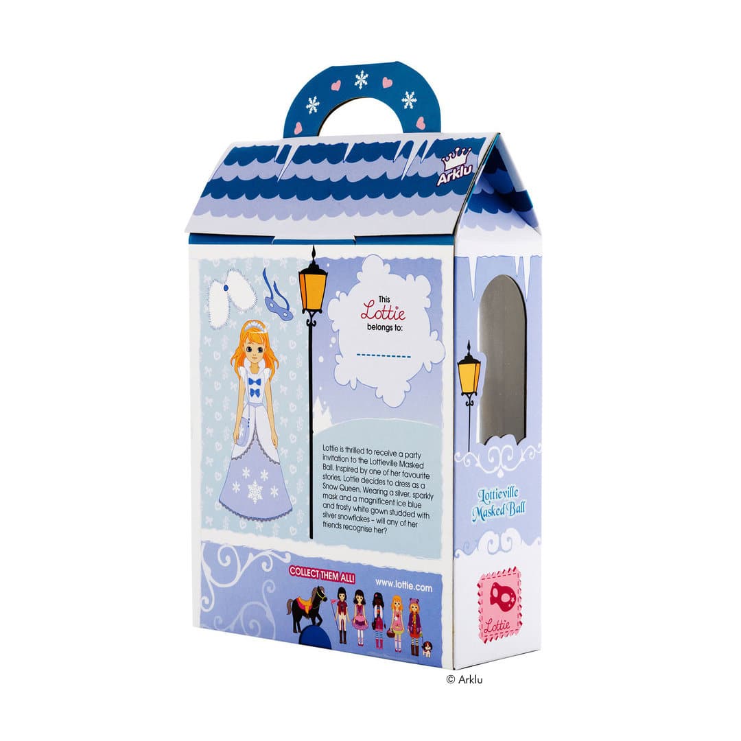 Die Snow Queen Lottie ist auf einen Maskenball eingeladen und hat sich für das Kostüm der wunderschönen Eiskönigin aus ihrem Lieblingsmärchen entschieden. Sie trägt ein zauberhaftes eisblaues und kristallweisses Abendkleid, das gespickt ist mit silbernen Schneeflocken. Dazu trägt Lottie einige passende Accessoires wie einen pelzig-flauschigen weißen Umhang, ein glitzerndes Diadem und eine ebenso glitzernde silberne Maske, eine feine Abend-Handtasche und dazu trägt Lottie ein Paar blaue Ballerinas.