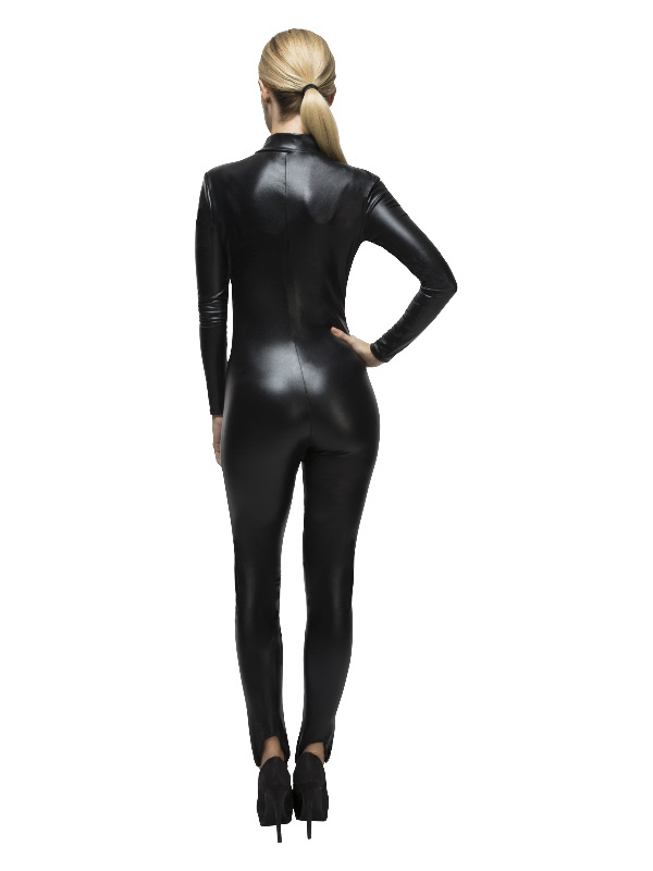 Erwachsenenkostüm Miss Whiplash, schwarz, mit Reißverschluss-Catsuit