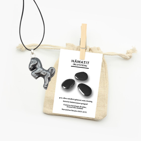 Zur optimalen Aufbewahrung wird der wunderschöne Pferd Anhänger in einem Natur-Jutebeutel geschützt. Eine ausführliche Beschreibungskarte wird mitgeliefert. Auf dieser sind allgemeine Informationen sowie die Heilwirkungen auf Körper, Geist und Seele gut zum Immer-wieder-Nachlesen zusammengefasst.