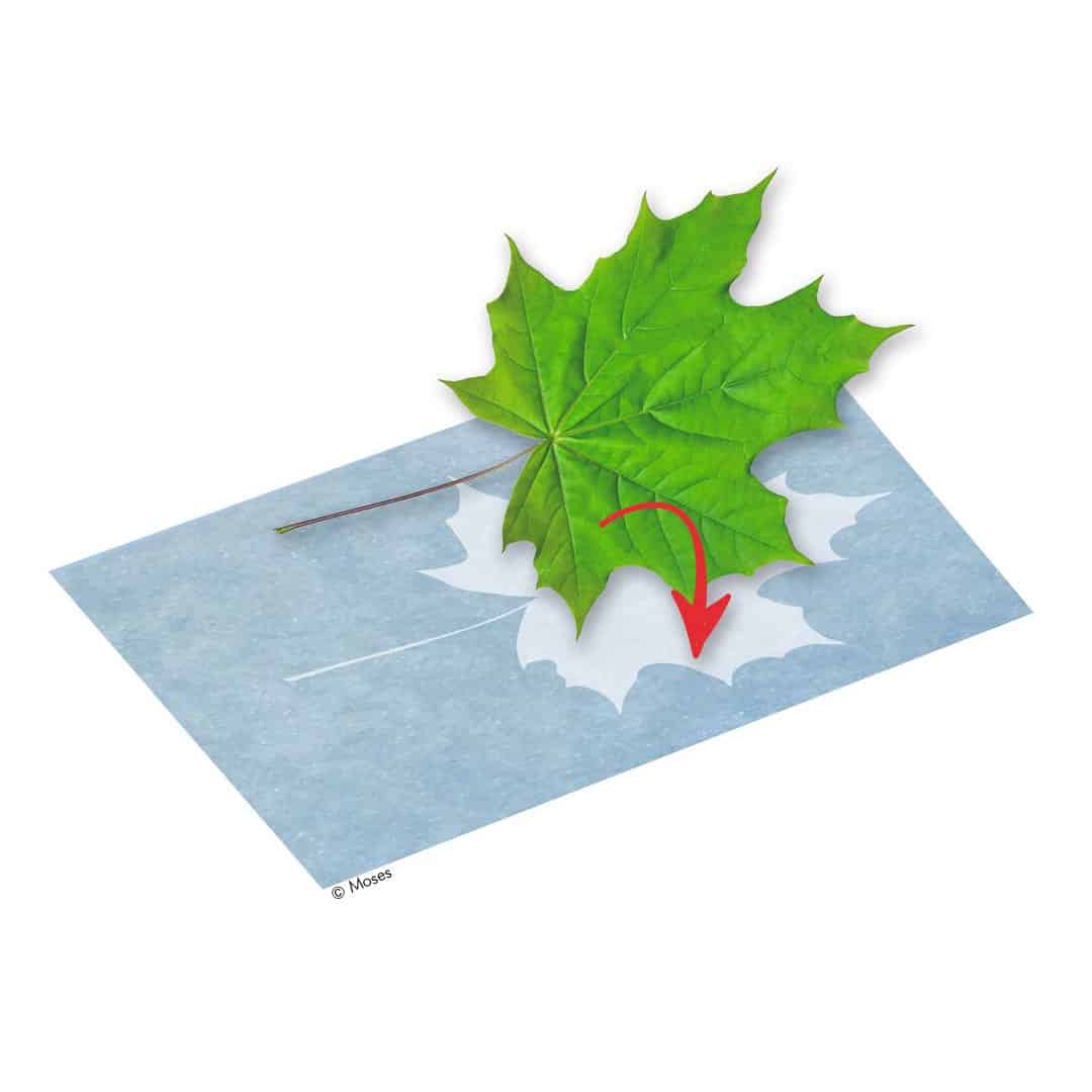Dazu können einfach verschiedene Objekte wie z.B. Blätter, Blumen oder anderes auf dem Papier platziert werden. Das Papier dann mit dem Gegenstand darauf erst in die Sonne und anschließend in ein Wasserbad legen. Das Paper ändert seine Farbe und der Druck wird sichtbar. Doch wie kann es sein, dass man nur mithilfe der Sonnenstrahlen drucken kann?