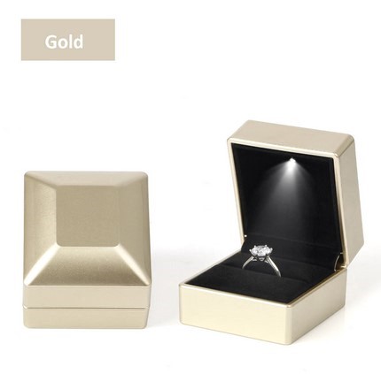 Eine Ring Box Aufbewahrungsschatulle für Fingerringe, mit LED Beleuchtung, welche beim Öffnen aktiviert wird. Farbe: Gold, Samt: Schwarz.
