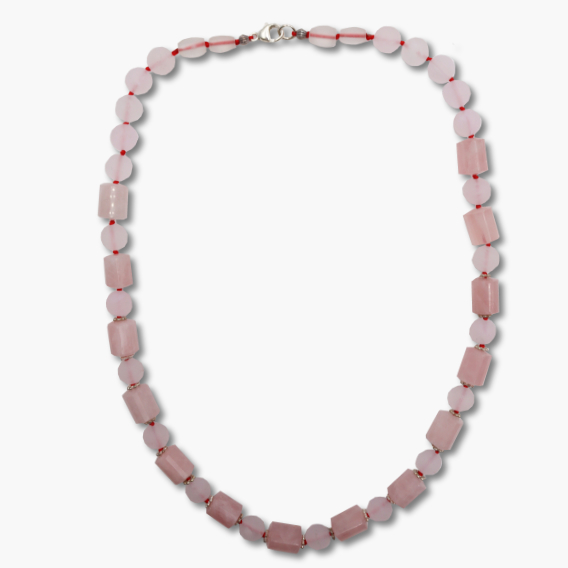 Diese elegante Rosenquarz-Kette mit mattierten Kugel- und glänzenden Zylinder-Perlen trägt die Botschaft: Liebe, Sanftheit und innere Klarheit. Der rosafarbene Rosenquarz ist nicht nur ein wunderschöner Edelstein, sondern seit Jahrhunderten als Stein des Herzens bekannt.
