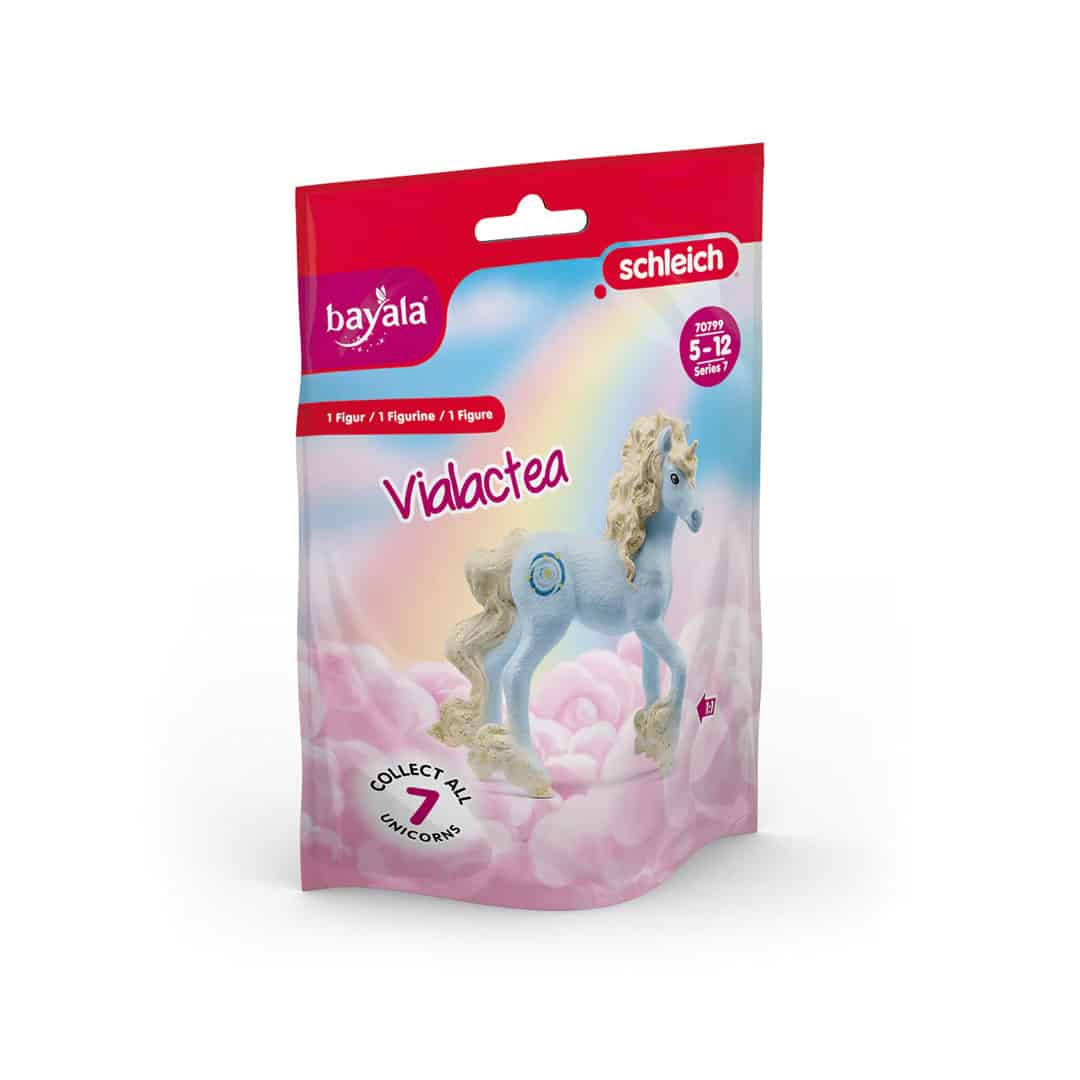 Das kleine Einhorn-Fohlen ist eines von sieben kleinen Sammeleinhörnern aus der Universumsfamilie der Schleich Sammeleinhorn-Serie 7, mit Glitzer und süßen Tattoos auf der Seite. Zusammen leben sie in den magischen Feldern der Elfenwelt bayala.