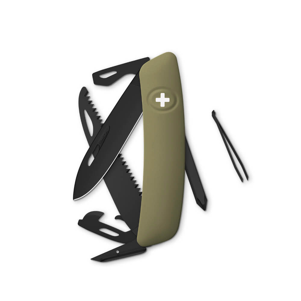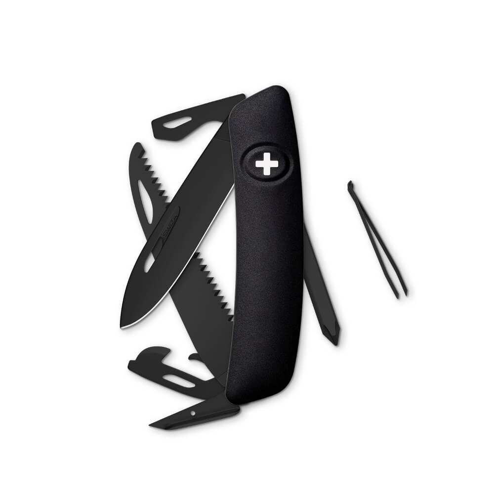Das faszinierende neue Schweizer Taschenmesser von SWIZA, das alle Blicke auf sich zieht: Das komplett schwarze SWIZA ALLBLACK mit einer hoch widerstandsfähigen tiefschwarzen Hightech-Beschichtung, revolutionärem 360° Design und robuster Anti-Rutsch-Oberfläche. Dank der leicht gekrümmten Form des Messers sind alle Werkzeuge leicht zugänglich und die durchgehenden Ausstanzungen ermöglichen Rechts- und Linkshändern ein einfaches Öffnen der Werkzeuge.