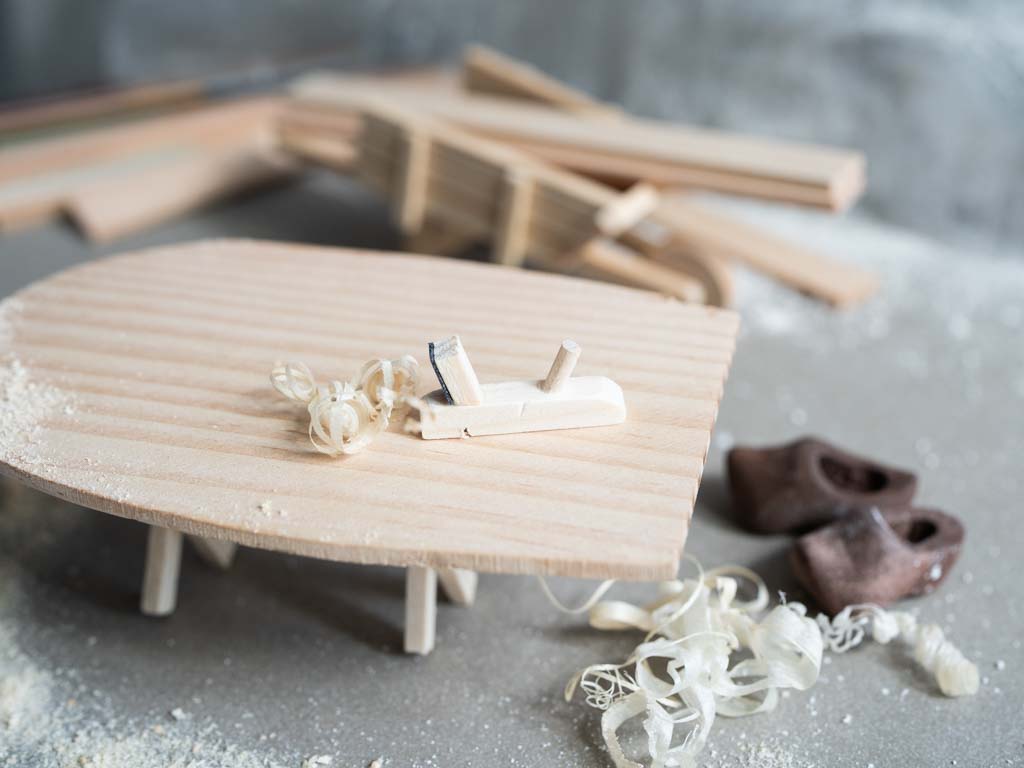 - detailgetreue Miniaturen wie Holzbock und Hobel