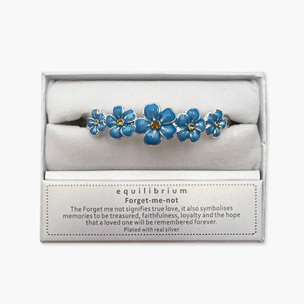 Damit der Vergissmeinnicht Armreifen geschützt bei Ihnen zuhause ankommt, wird er in einer tollen Schmuckverpackung aufbewahrt und geliefert.