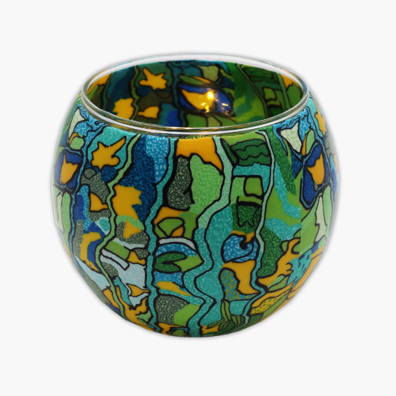 Windlicht Leuchtglas aus Fimo „Muster“ grün/gelb